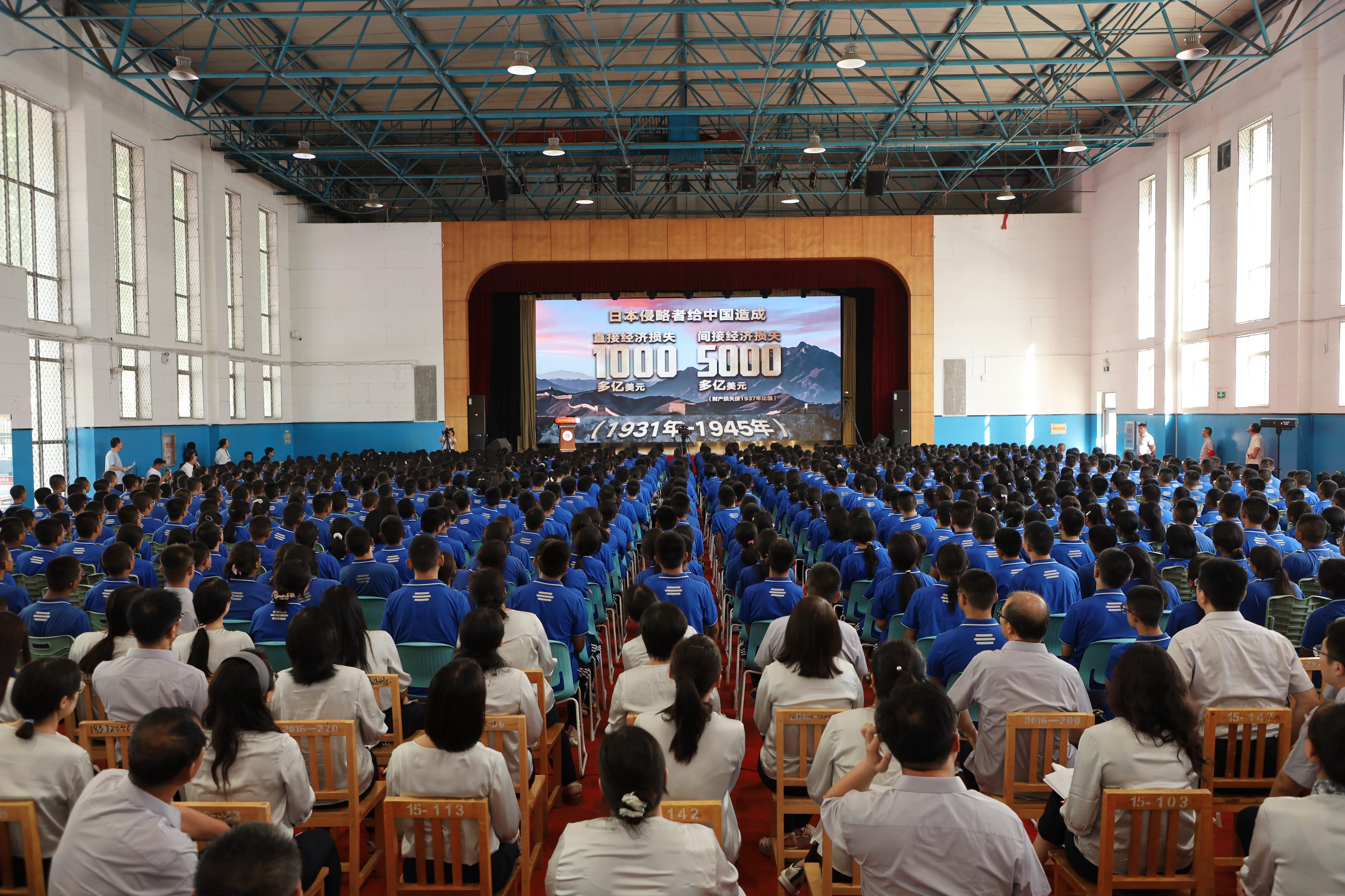 全体师生首先共同观看纪念中国人民抗日战争暨世界反法西斯战争胜利80周年宣传片《无名》。该片以山河为碑、以日月为证,向湮没于历史长河却永铸民族魂魄的无名英雄致敬。影片通过珍贵历史影像与亲历者口述相结合的方式,真实再现了十四年抗战期间中华大地上普通军民“誓死不做亡国奴”的铮铮铁骨与壮烈抉择。